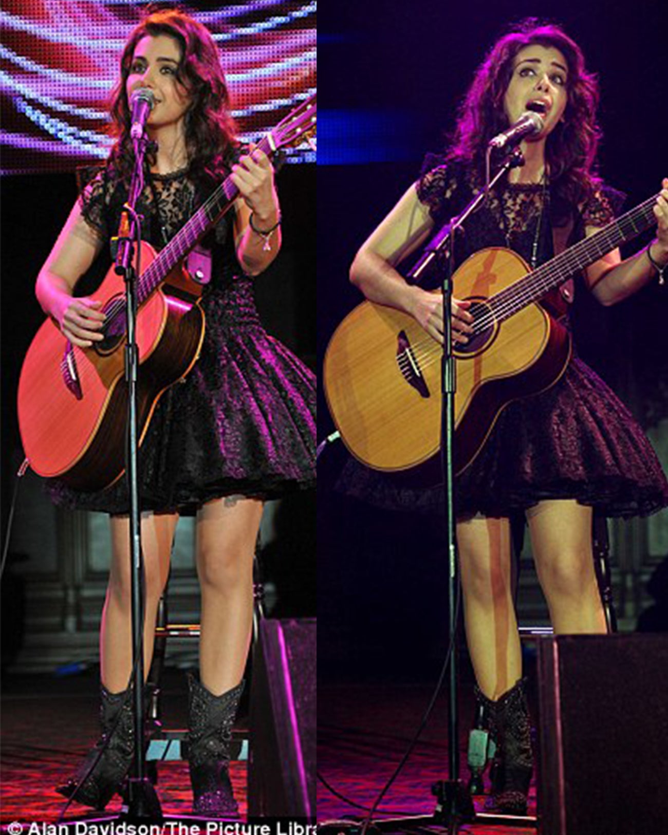 In 2011 Katie Melua's stylist visited Sukies. No stranger to our shoes she chose a black satin cowboy boot with diamantes for Katie's concert.